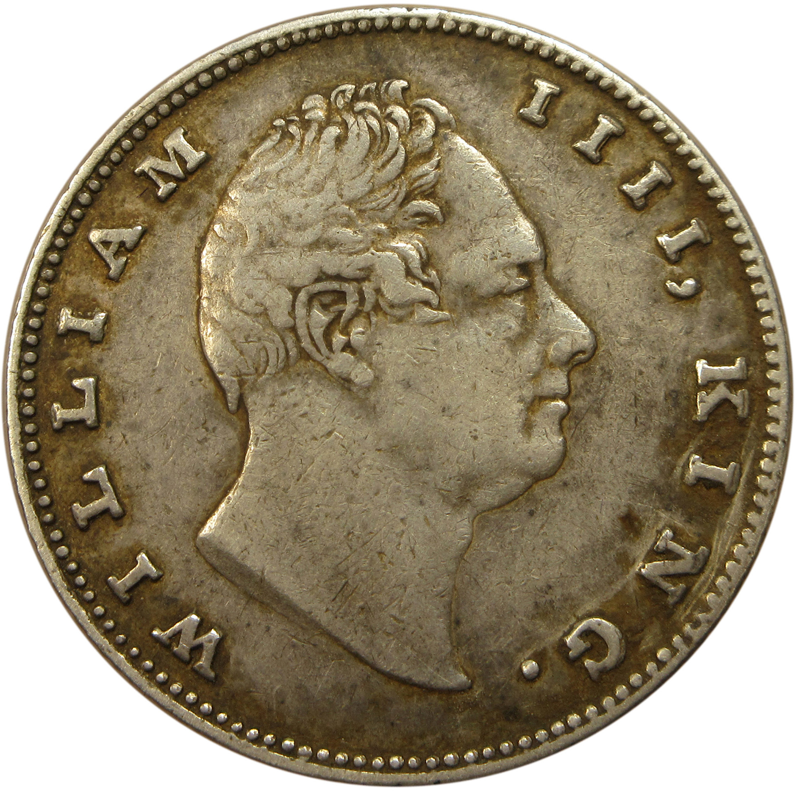 Obverse:Â Bear head of King William IV facing right with Legends WILLIAM IV, KING. around it.