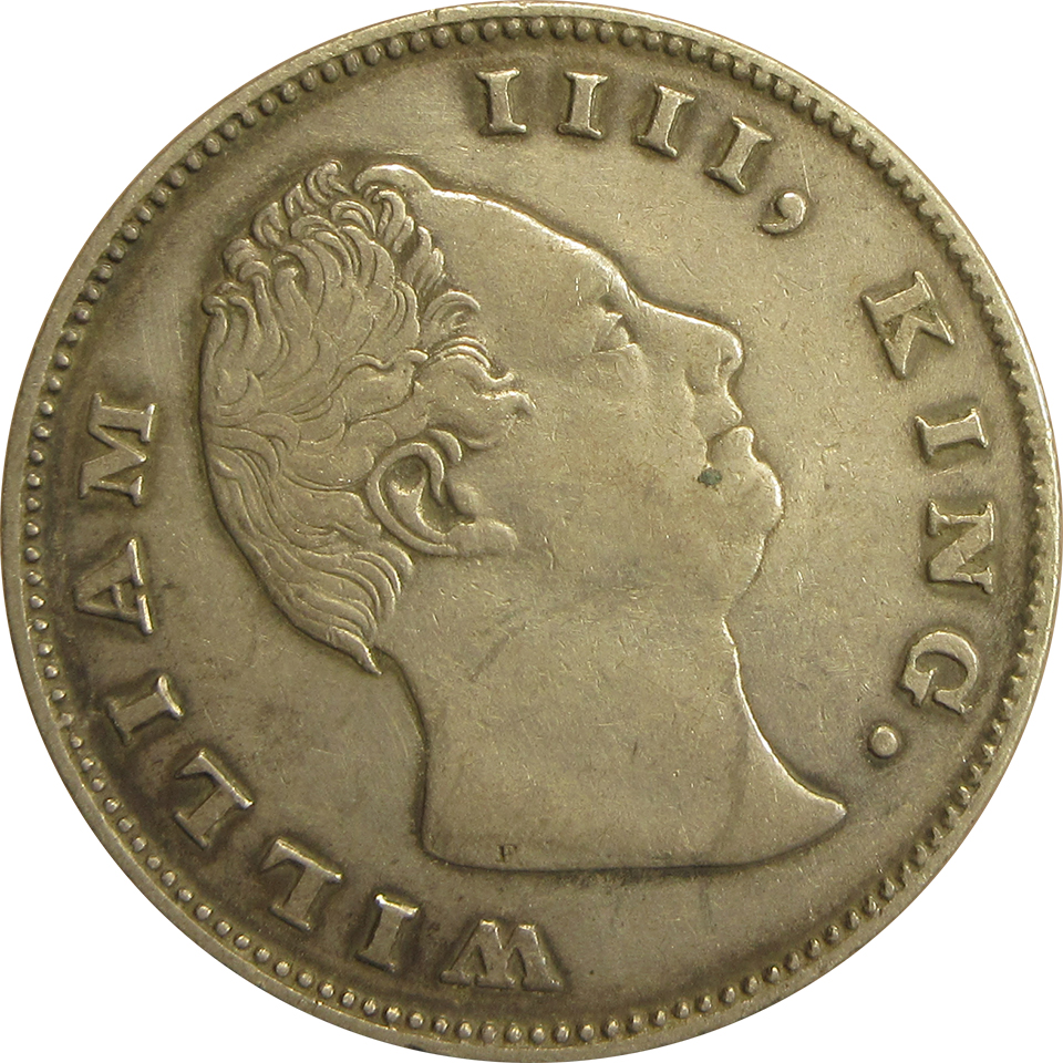 Obverse:Â Bear head of King William IV facing right with Legends WILLIAM IV, KING. around it.