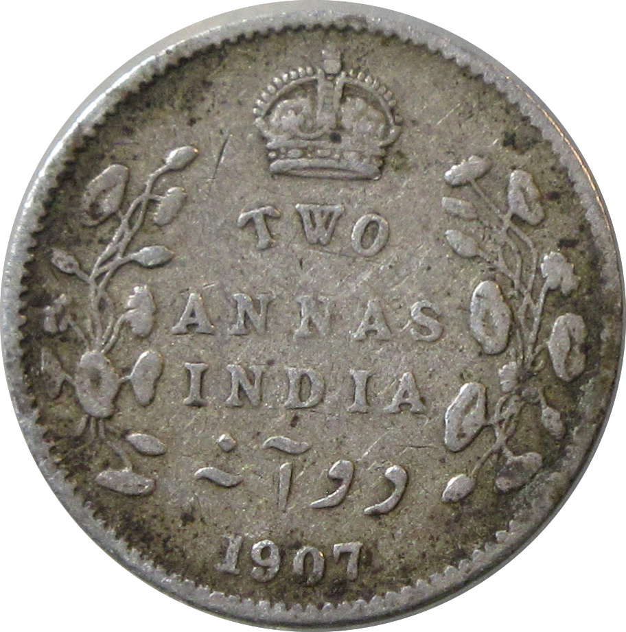 1907 Silver Two Annas Edward VII King Calcutta Mint Silver
