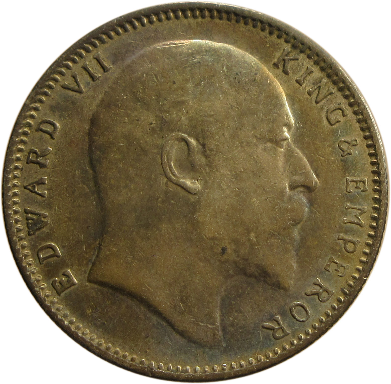 Obverse: Bare headed bust of the King Facing right. EDWARD VII KING AND EMPEROR legend around the bust. All within a Raised, Toothed Rim.