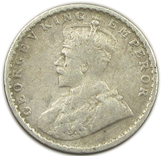Obverse: Crowned and robed bust of King George V facing left with Legends GEORGE V KING EMPEROR around it.