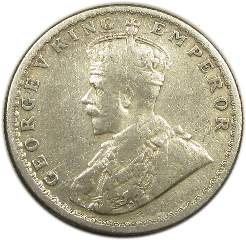 Obverse: Crowned and robed bust of King George V facing left with Legends GEORGE V KING EMPEROR around it.