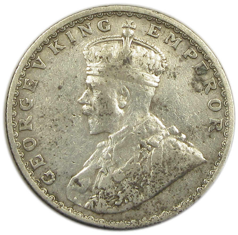 Obverse: Crowned and robed bust of King George V facing left with Legends GEORGE V KING EMPEROR around it.