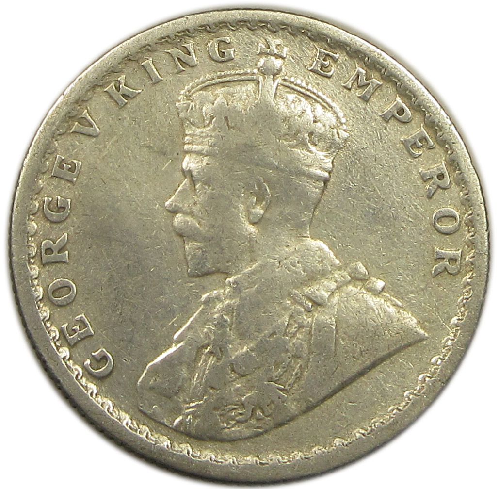 Obverse: Crowned and robed bust of King George V facing left with Legends GEORGE V KING EMPEROR around it.