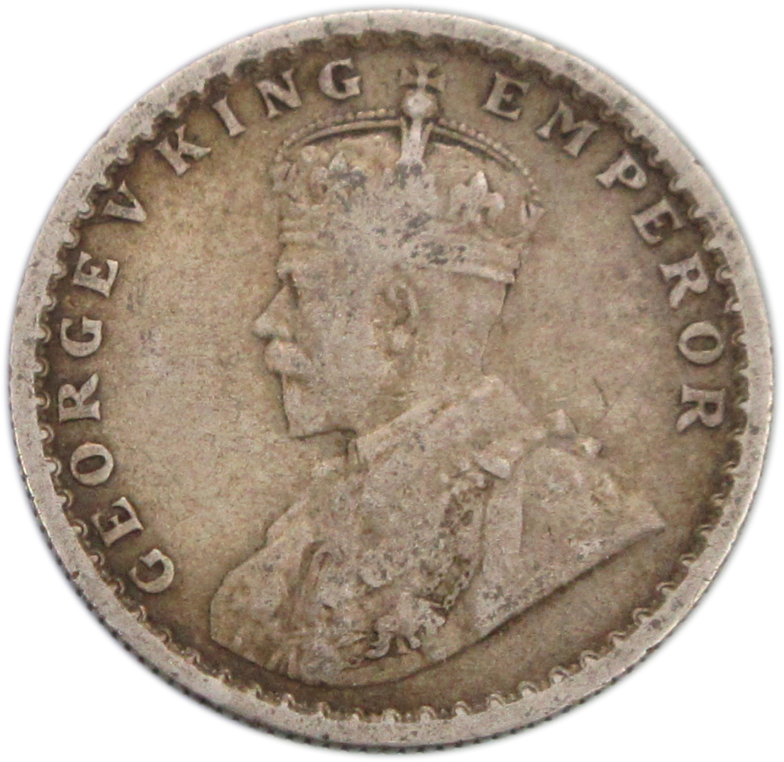 Obverse: Crowned and robed bust of King George V facing left with Legends GEORGE V KING EMPEROR around it.
