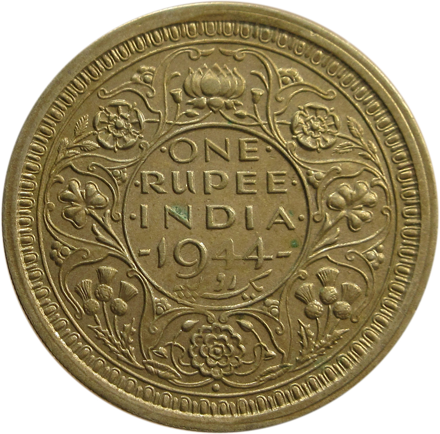 - Denomination: One RupeeYear: 1944 Mint: Bombay Metal: Silver 500 fineness/Quaternary Alloy