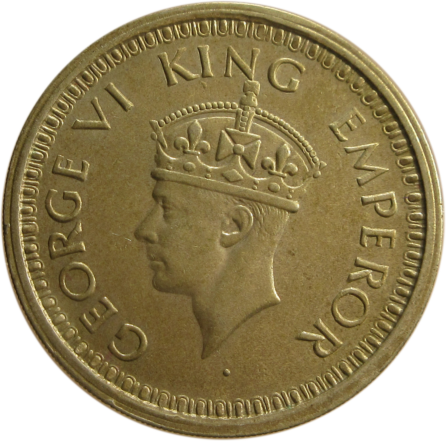 Obverse: Crowned head of King George VI facing left with Legend GEORGE VI KING EMPEROR around it.