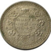 Reverse: HALF RUPEE/INDIA/1945/Hasht Ana (Persian) within a single line circle, surrounded by a scroll composed of a rose, thistle & shamrock. The Indian Lotus is placed at the top and bottom with 2 different representations. All within a toothed decorative border an another plain-line circle.