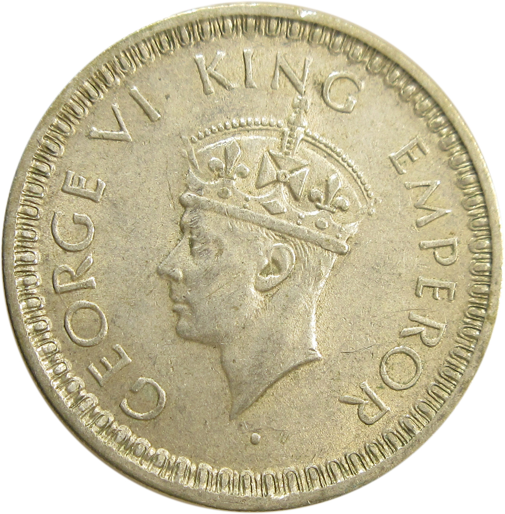 Obverse: Crowned head of King George VI facing left with Legend GEORGE VI KING EMPEROR around it.
