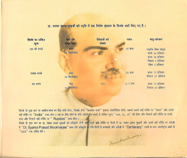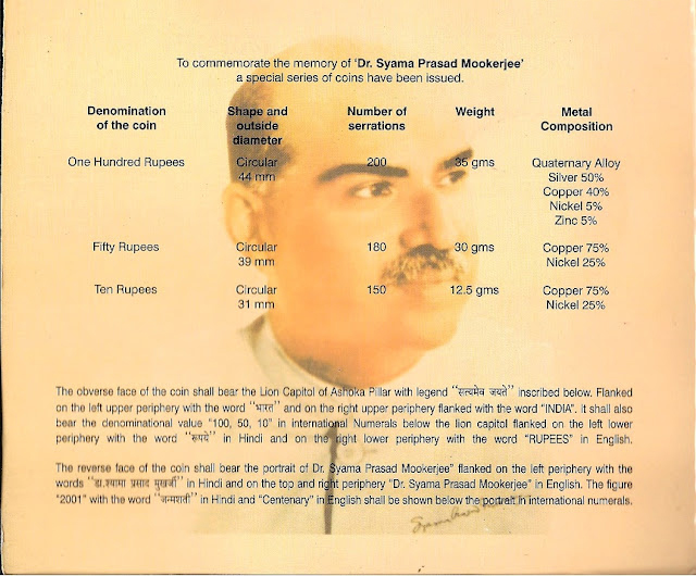 2001 – Dr Syama Prasad Mookerjee Birth Centenary – UNC set