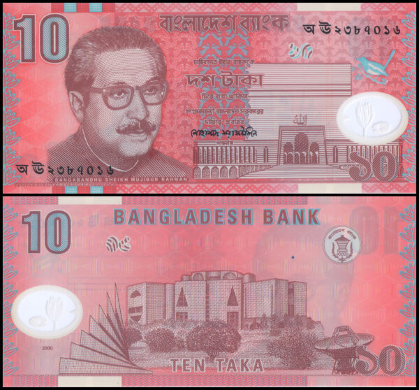 Bangladesh 10 Taka – Bangladesh Bank 2000 Polymer Banknote