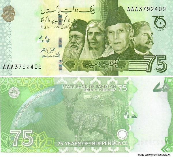 Pakistan 75 Rupees – State Bank of Pakistan 75 Years of Independence (1947-2022)