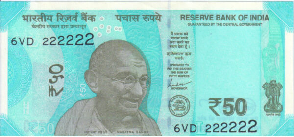 ₹50 Fancy solid Number Note: Serial number “222222” with a solid pattern.