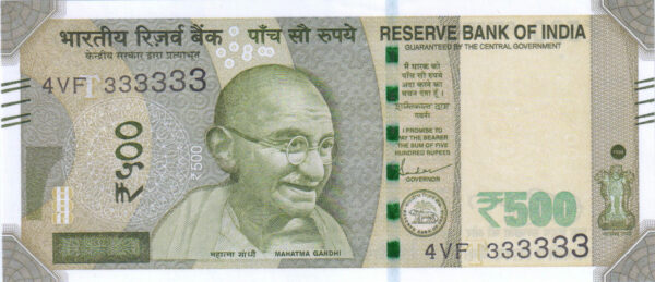 ₹500 Fancy solid Number Note: Serial number “333333” with a solid pattern.